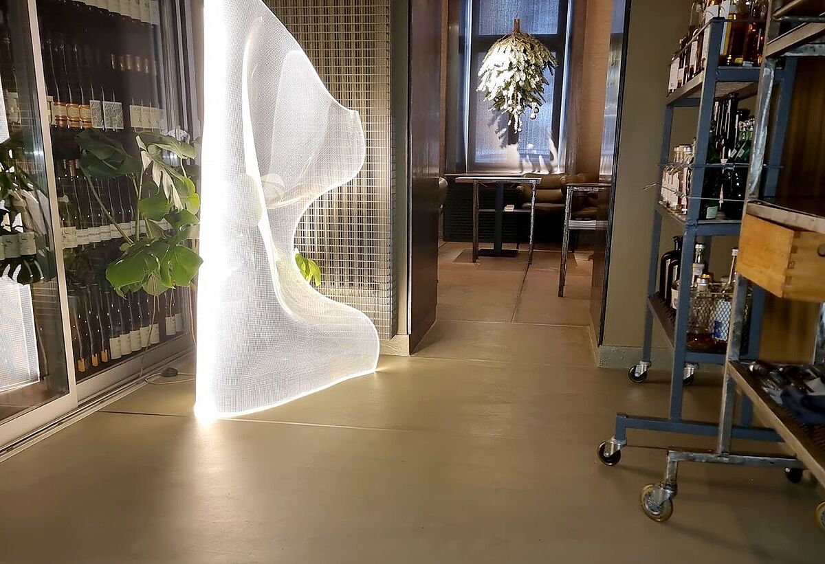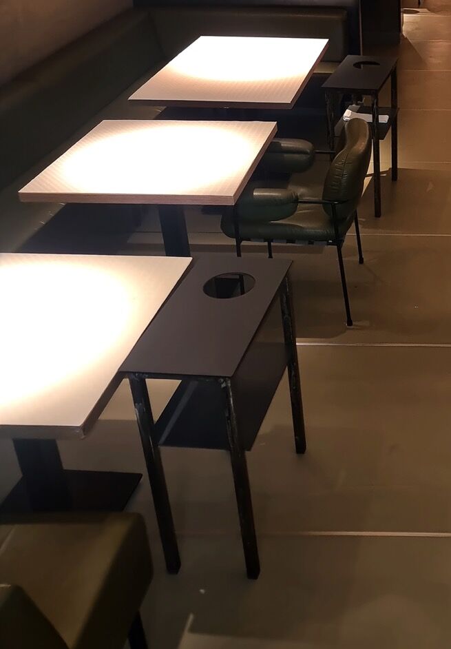 嵌入式不锈钢型材也体现了餐厅的创意。