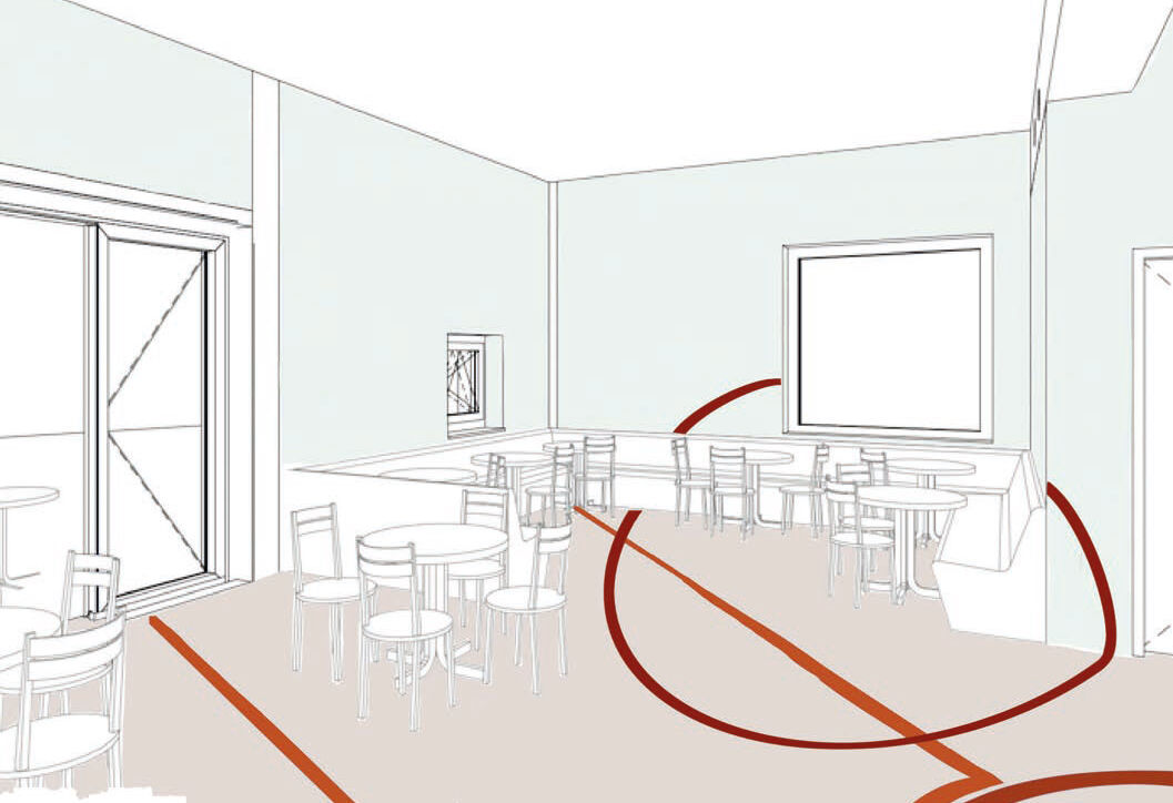 Der Hochschulkomplex der HKS Ottersberg am Campus Große Straße 107 in Ottersberg wird neu gebaut, wodurch die Innen- und Außenräume des Eingangsbereichs, insbesondere die Caféte, neu gestaltet werden. Die studentisch geführte Caféte am Altcampus erfährt eine komplett neue Raumgestaltung, die den Wünschen der Studierenden entspricht. Alle Studiengänge, Verwaltung und Medienräume sind erstmals seit den achtziger Jahren auf einem Campus vereint. Die Caféte am Kopf des Gebäudes wird zum zentralen Treffpunkt für Studierende, Mitarbeiter*innen und Lehrende. Ein studentisches Planungsteam mit verschiedenen Kompetenzen gestaltet das Interieur in Zusammenarbeit mit der ARDEX Group. Die Gestaltung greift das Thema Begegnung auf und berücksichtigt die Wünsche zur Möblierung. Linien ziehen sich durch den Raum, erzeugen Muster und neue Richtungen.